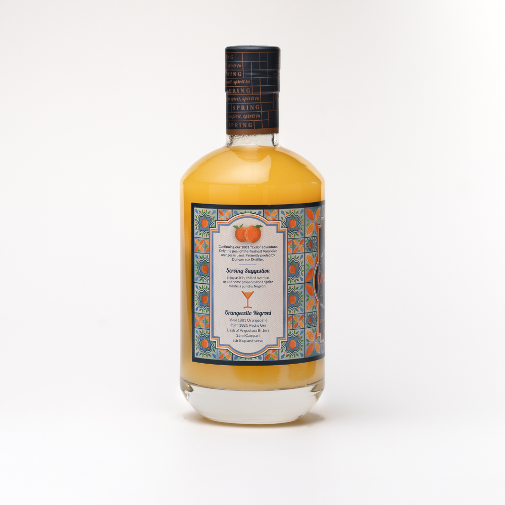 Continuing our 1881 Cello adventure, Orangecello is made using just the peel of Valencian oranges, patiently peeled by Duncan our Distiller, the peel is then infused in alcohol finished off with some sugar syrup for a sweeter taste. A lovely vibrant orange liqueur with a sweet, soft taste. 1881 Orangello is an inspired taste, made in Scotland.